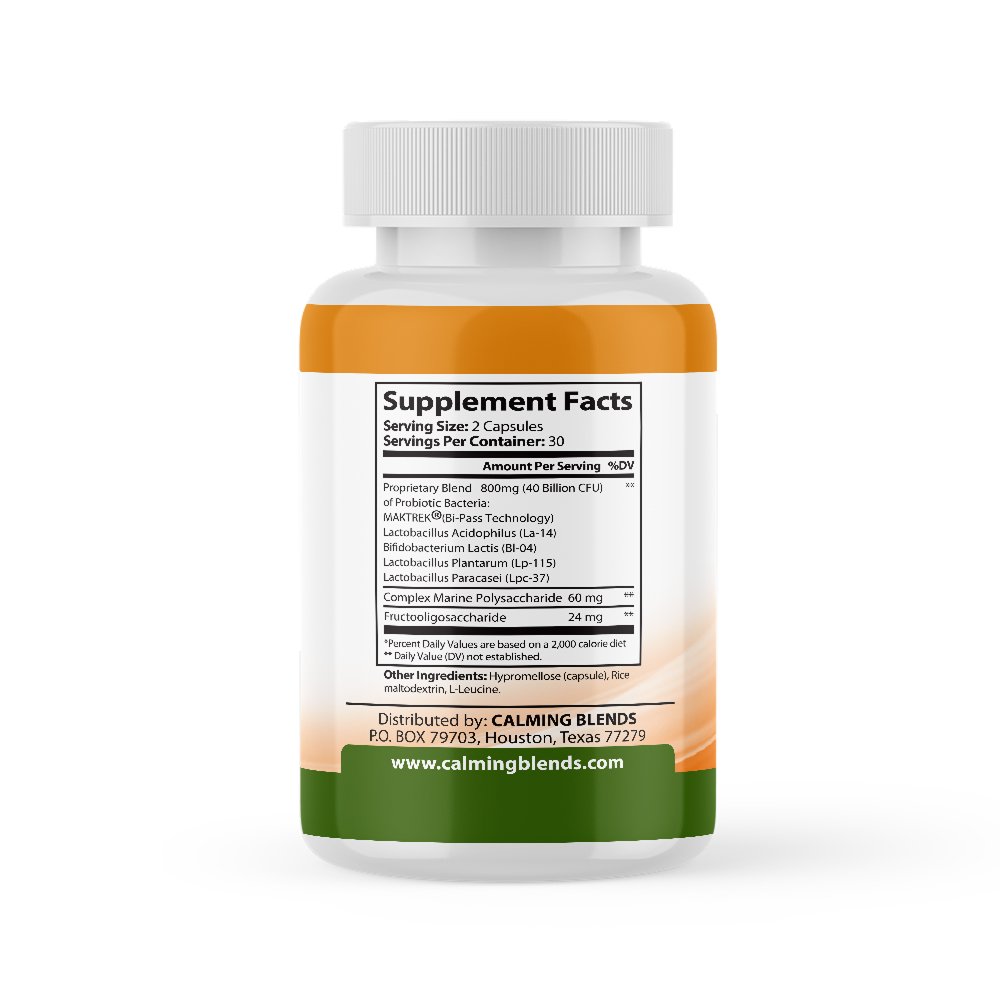 When the capsule is swallowed it will come in contact with the stomach acid. The acid will then dissolve the capsule. The complex marine polysaccharides will form a secondary internal capsule protecting the living probiotic cells from the acid. This ensures better survival of the living beneficial probiotic bacteria.