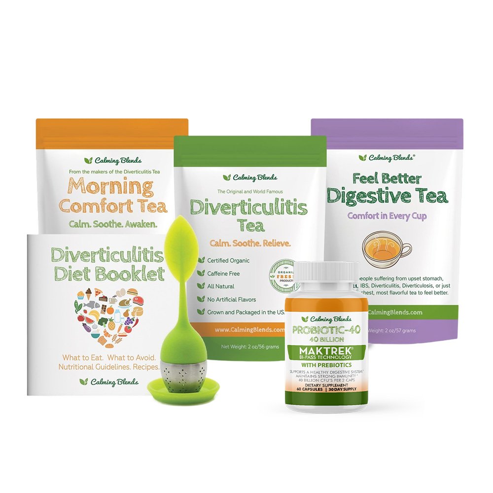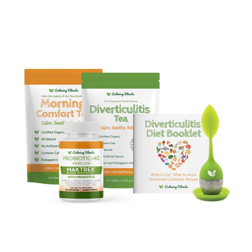 Diverticulitis Tea + Feel Better Tea + Morning Comfort Tea + Probiotic + Infuser
